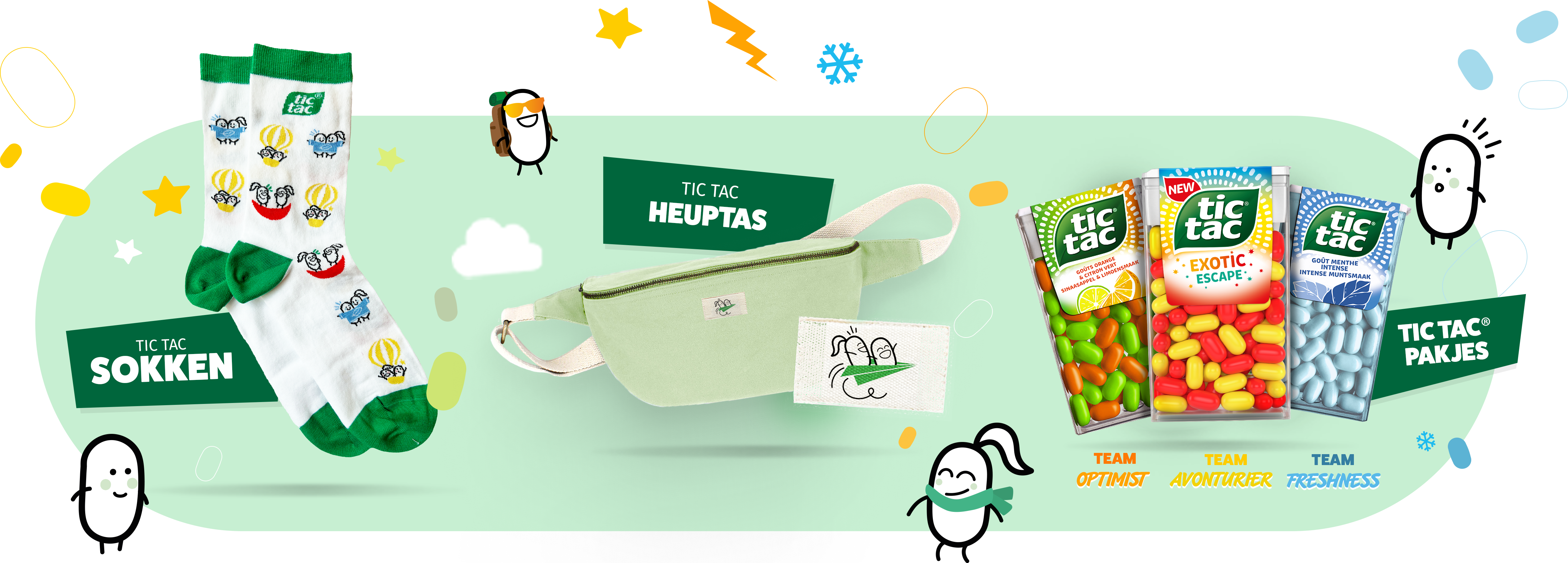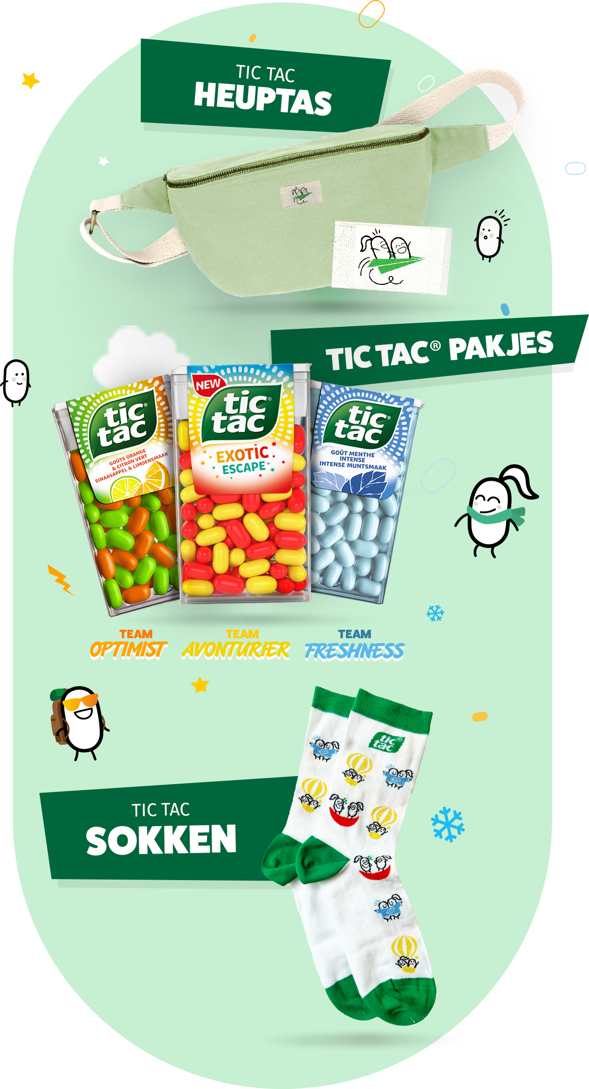 fr nl Bij welk Tic Tac-team hoor jij?Doe de quiz en probeer unieke geschenkente winnen! Ik doe mee! Bekijk de voorwaarden en spelregels hier. Win unieke Tic Tac-geschenken ! Ik doe mee!